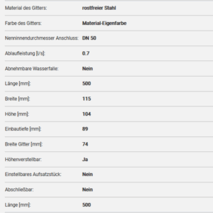 Evenes Duschrinne 500 mm inkl. verfliesbarem Einsatz