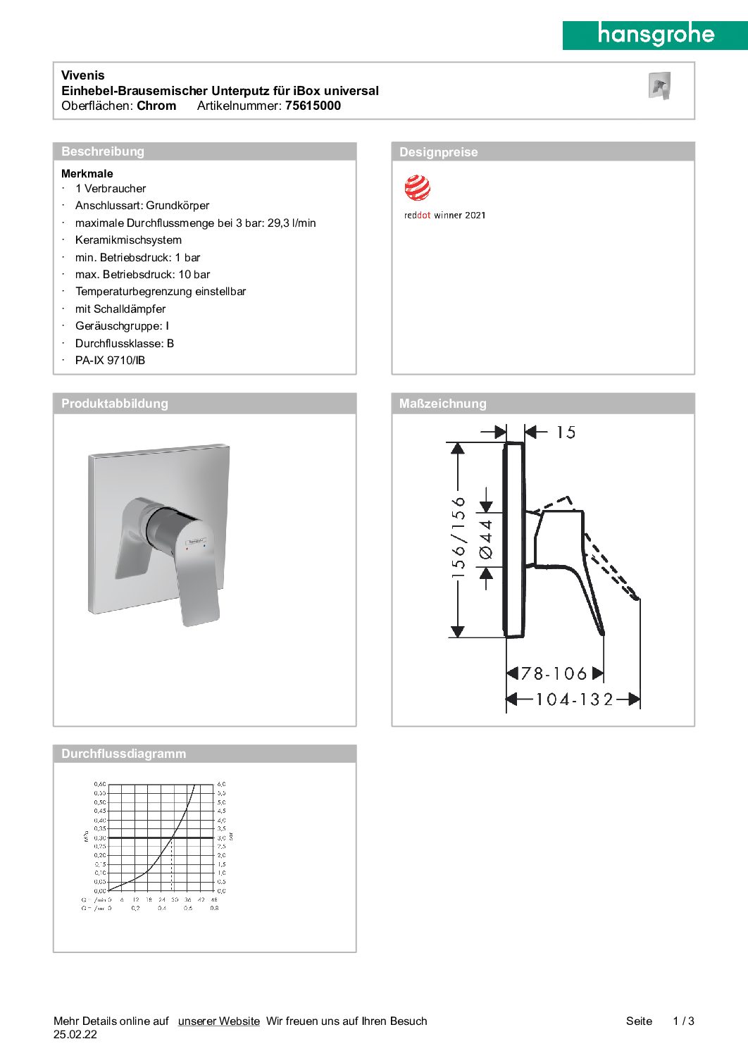 Unterputz-Mischer Hansgrohe DuoTurn E 1 Verbraucher