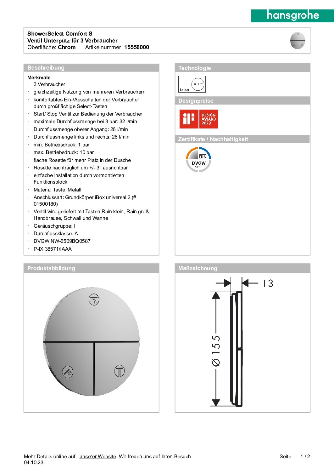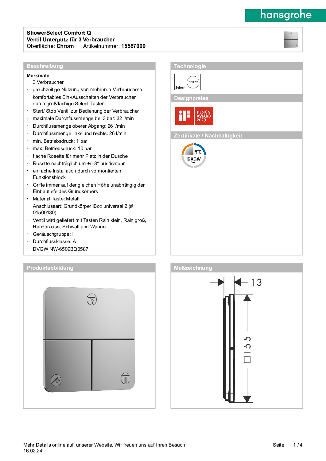 Unterputz-Absperrventil Hansgrohe ShowerSelect Comfort E Fertigset 3 Verbraucher chrom