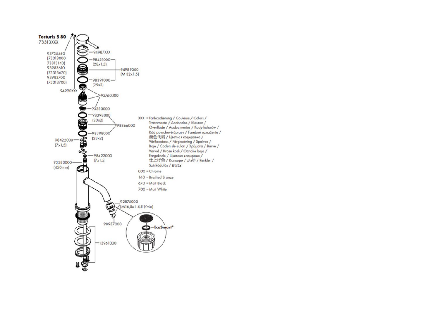 Standventil Hansgrohe 80 Tecturis S Ausladung 108 mm ohne Ablaufgarnitur chrom