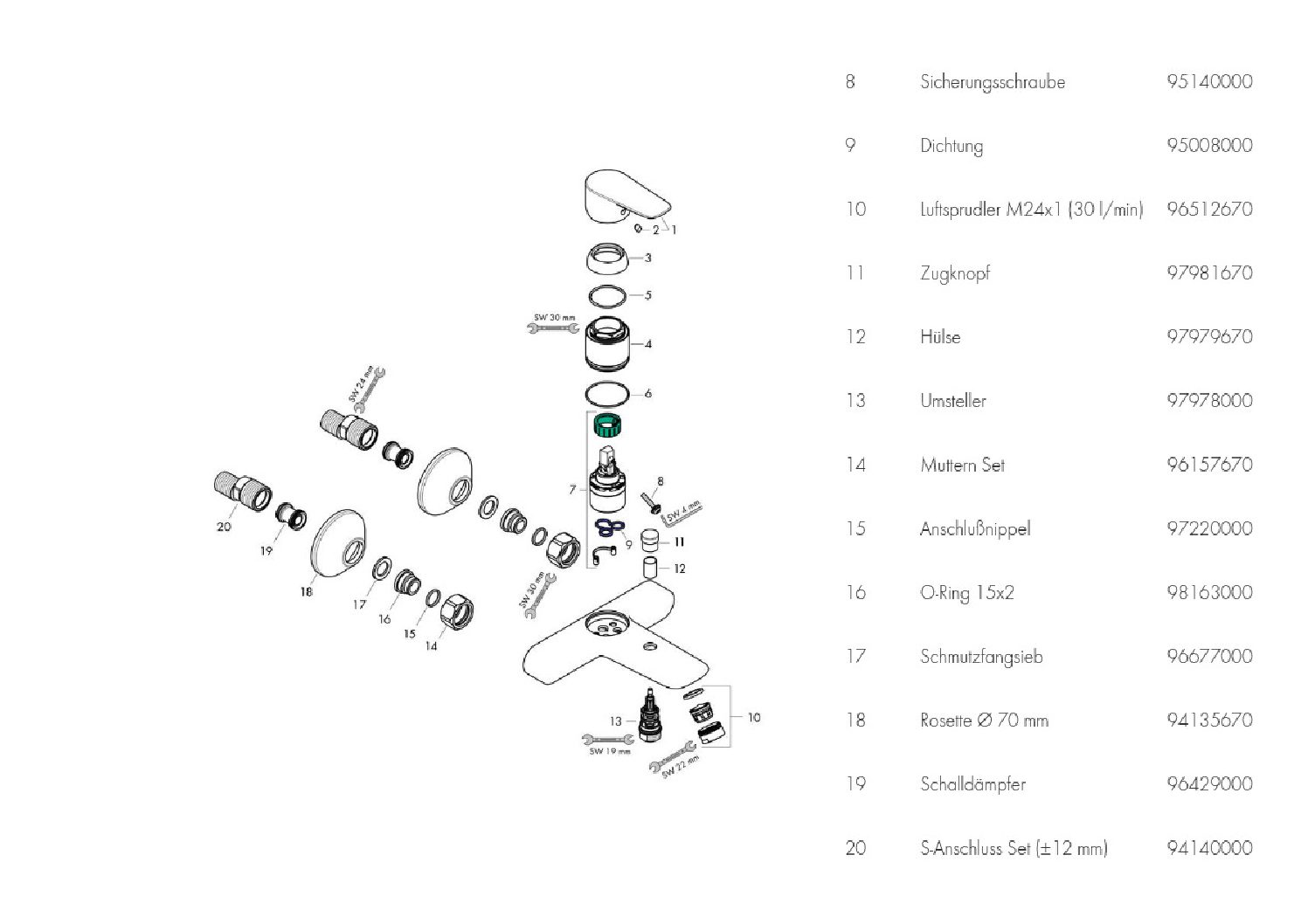 AP-Wannenmischer Hansgrohe Talis S Ausladung 172,5 – 180 mm chrom
