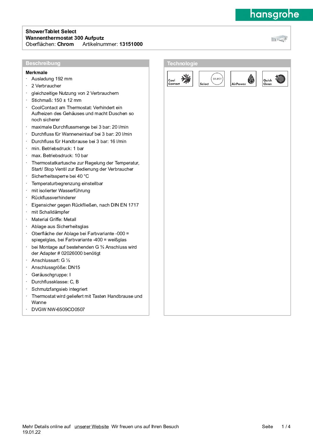 AP-Brausethermostat Hansgrohe ShowerTablet Select 400 chrom