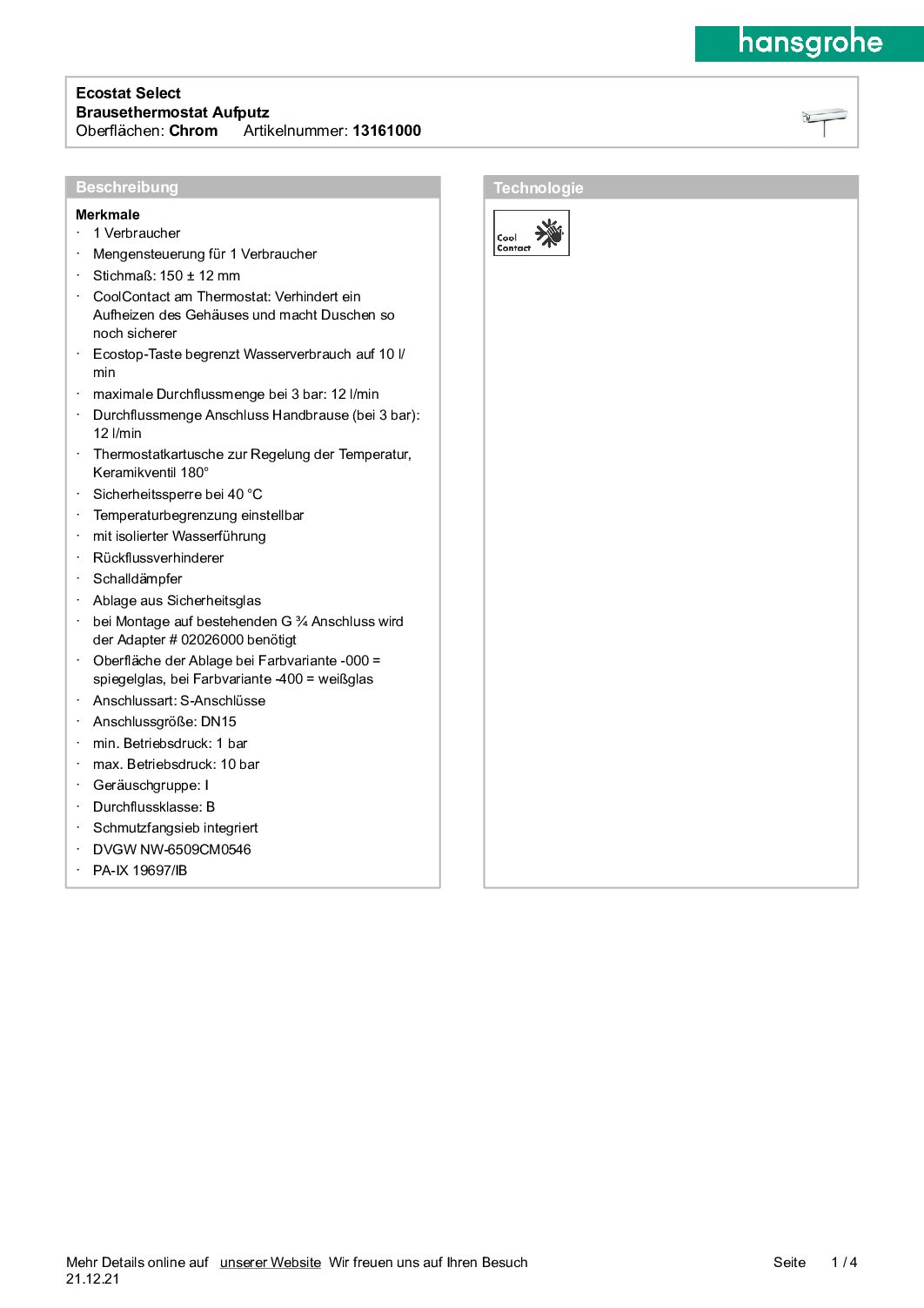 AP-Brausethermostat Hansgrohe Ecostat Select chrom