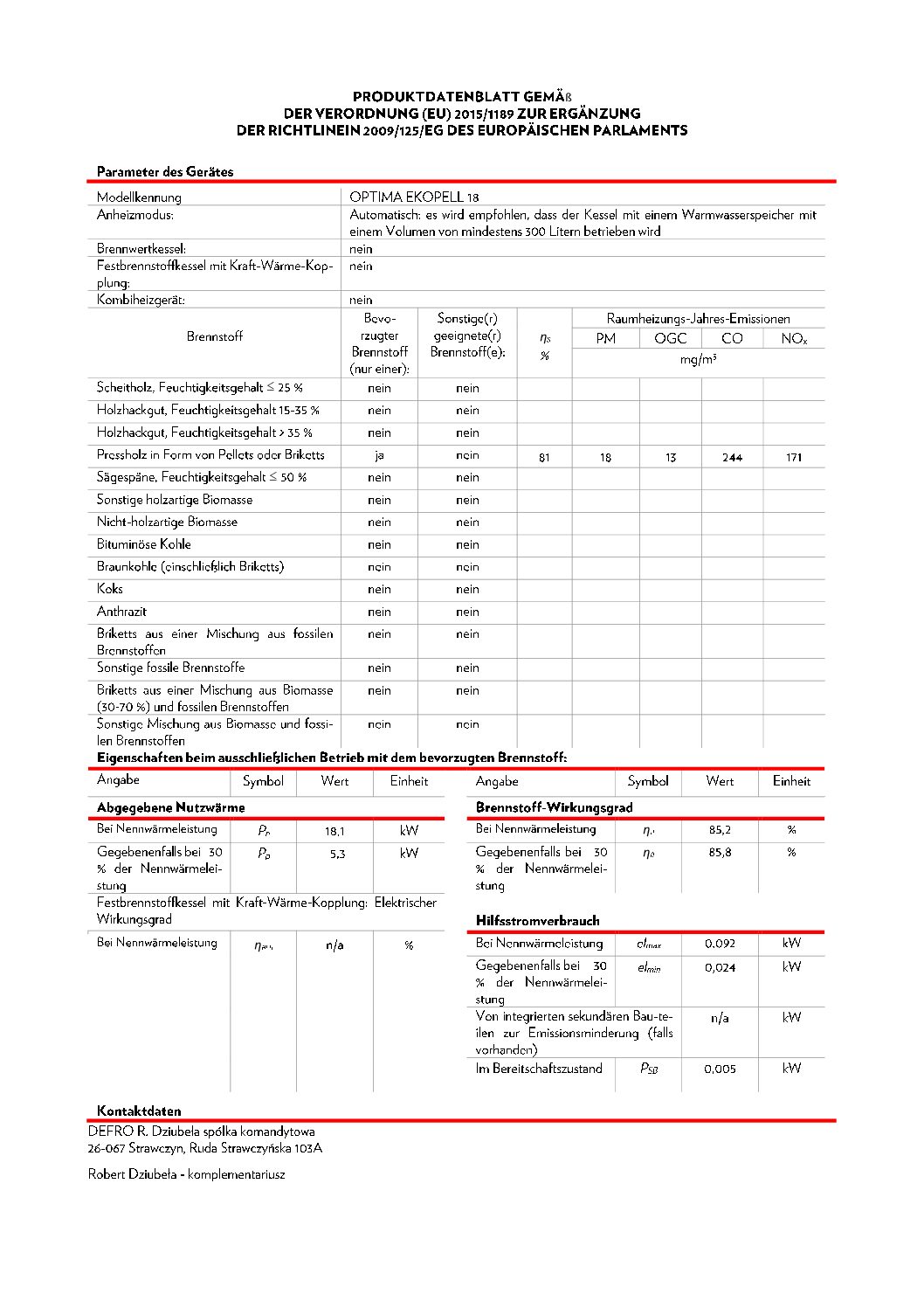Defro Optima Ekopell 18