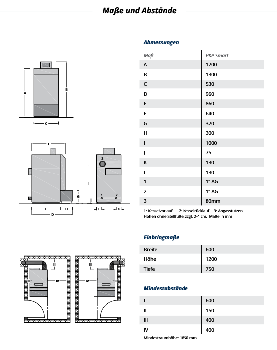 - Abgasrohranschluss (80mm) nach hinten ausgerichtet