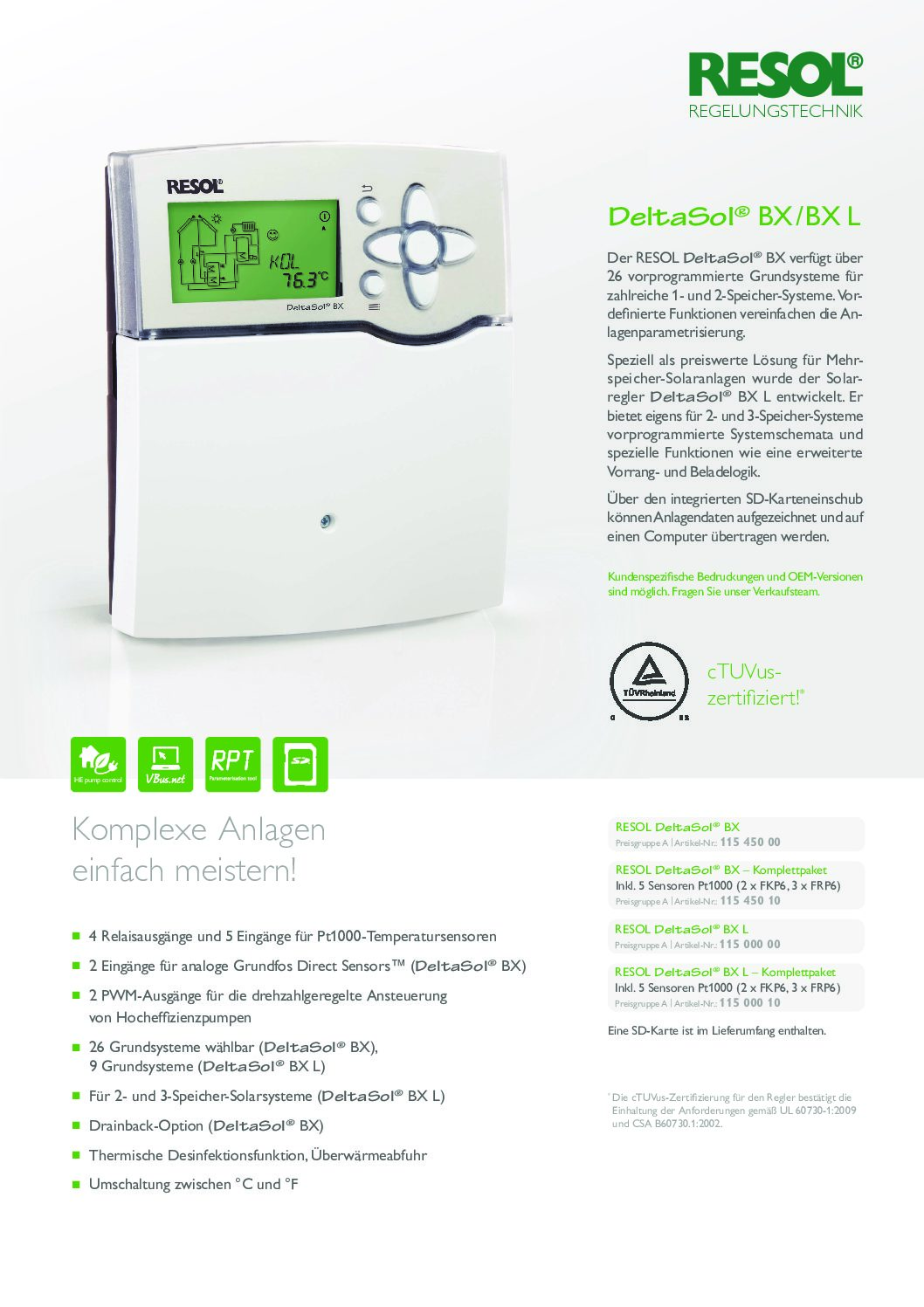Differenztemperaturregler DeltaSol BX Komplettpaket mit 5 Fühler