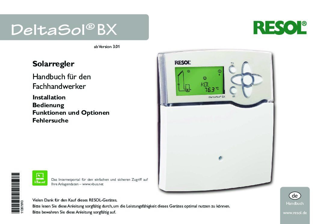 • Datenschnittstelle: RESOL VBus®, SD-Karteneinschub