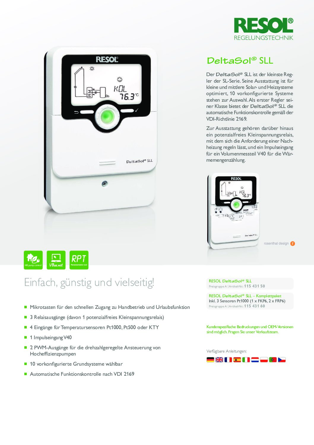 Differenztemperaturregler DeltaSol SLL inkl. 3 Fühler