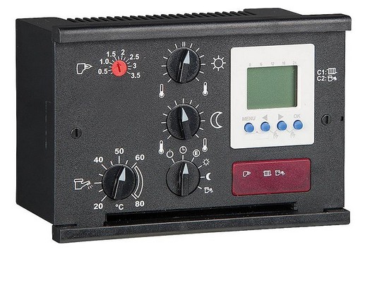 • Elektronische Speichertemperaturregelung, Speichervorrangschaltung, Ladepumpennachlauf, Betriebswahlschalter, Kesselanfahrschutz