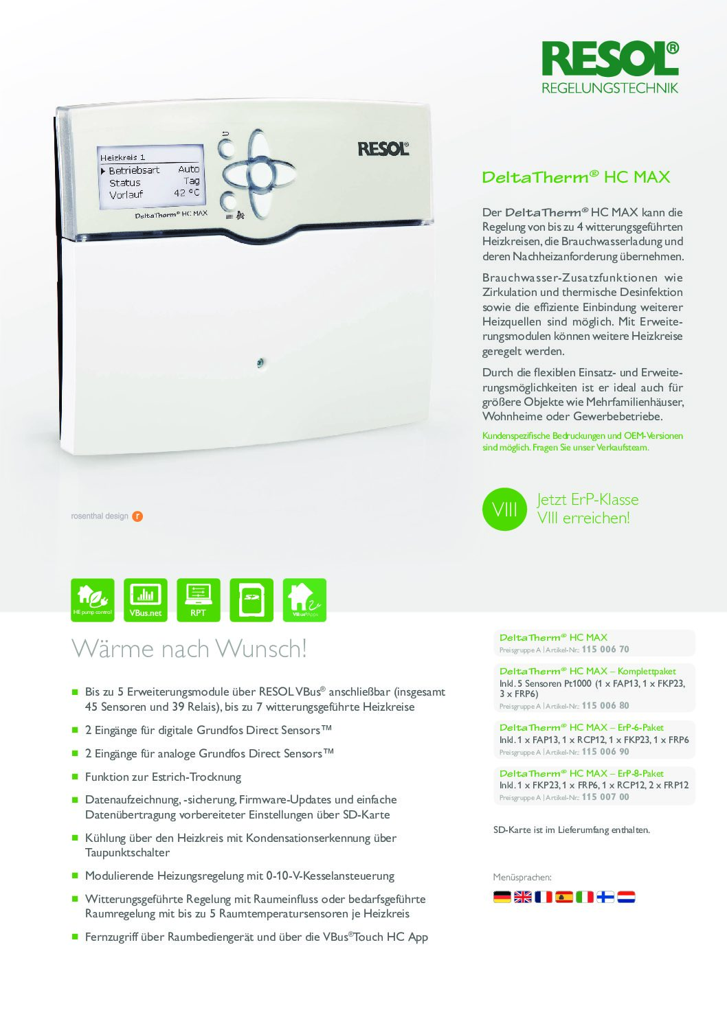 Heizungsregelung Resol Delta Therm HC Max inkl. 5 Sensoren