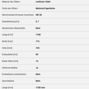 Evenes Duschrinne 1100 mm inkl. verfliesbarem Einsatz
