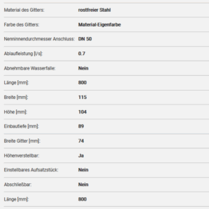 Evenes Duschrinne 800 mm inkl. verfliesbarem Einsatz