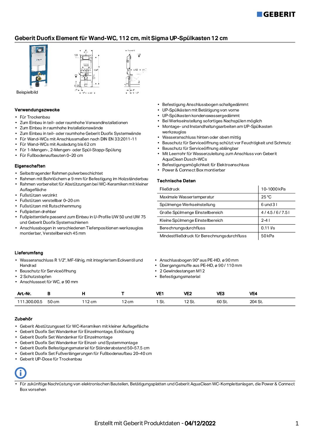 Element Geberit Duofix für Wand-WC, 1120mm, mit UP-Spülkasten Sigma