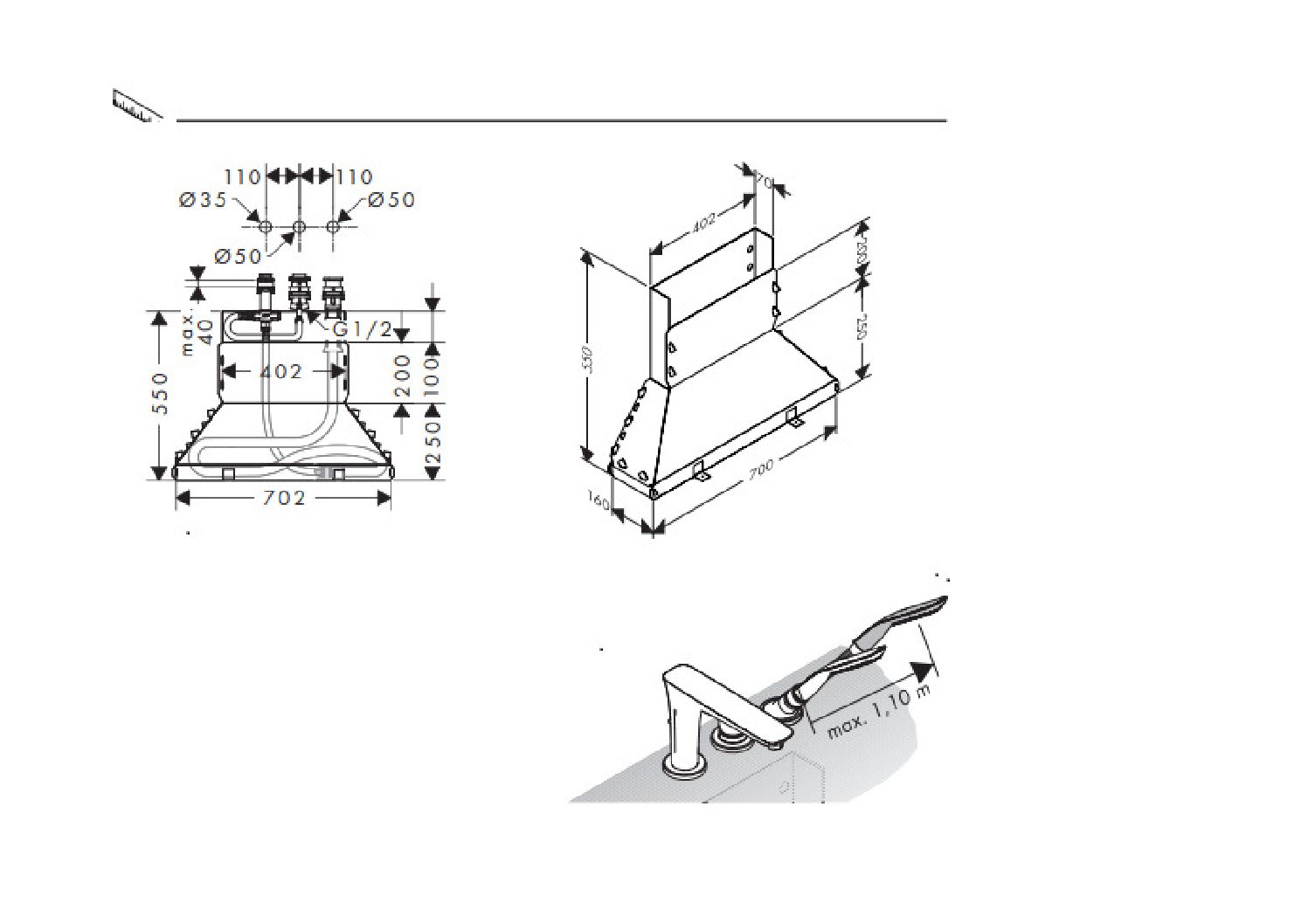 • Maximale Ausziehlänge Brauseschlauch: 1100 mm