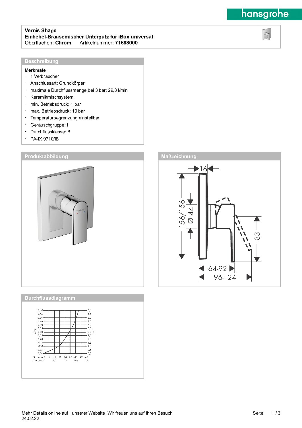 Unterputz-Brausemischer Hansgrohe Vernis Shape Rosette 156×156 mm chrom