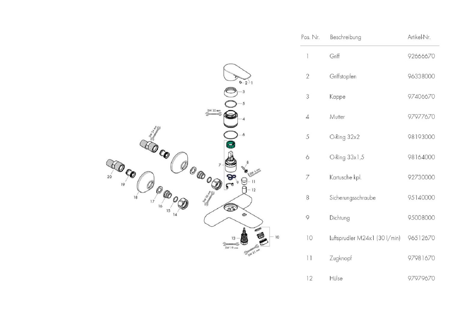 AP-Wannenmischer Hansgrohe Logis Ausladung 194 mm chrom
