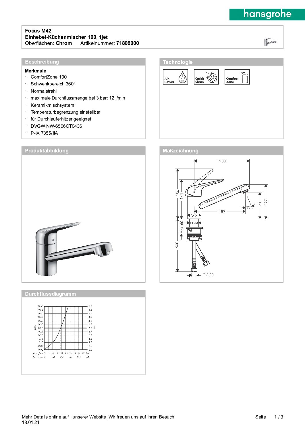 Spültischmischer Hansgrohe 100 Focus M42 Schwenkauslauf Ausladung 189 mm chrom