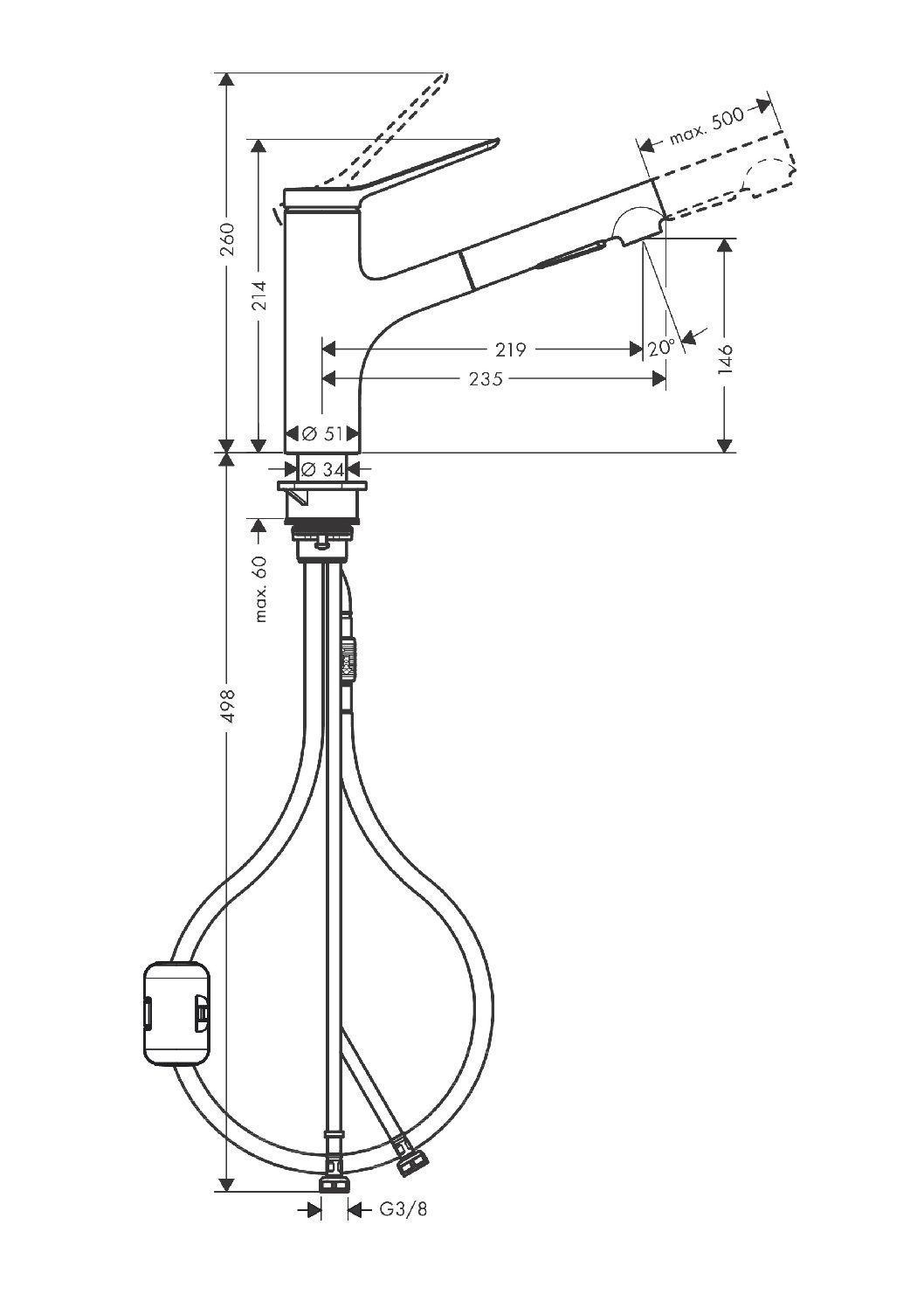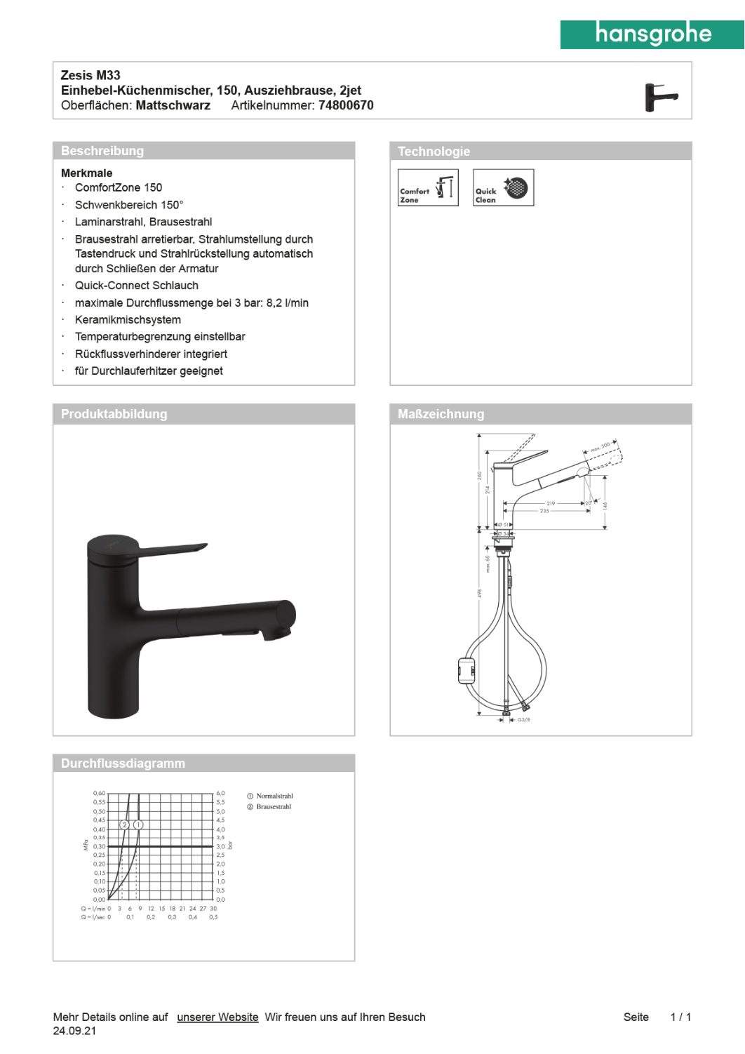 Spültischmischer Hansgrohe 150 Zesis M33 herausziehbare Geschirrbrause 2jet mattschwarz