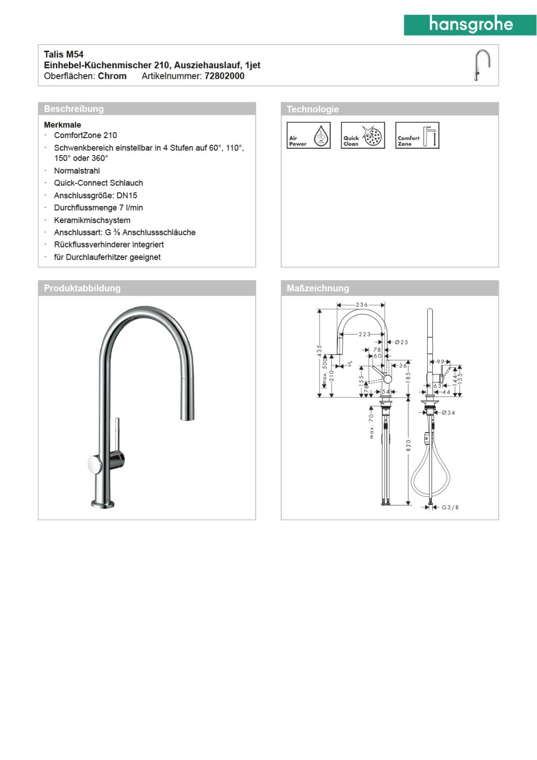 • Auslaufhöhe: 210 mm