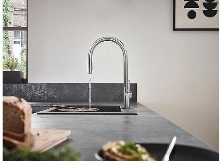 Ausziehbarer Einlauf mit Perlator: |