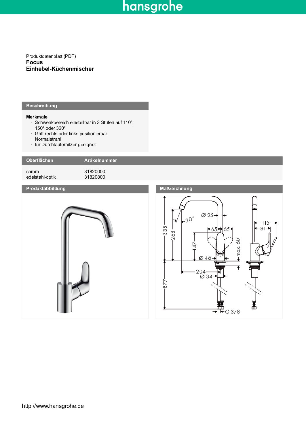 Spültischmischer Hansgrohe Focus M41 seitliche Betätigung 1jet chrom