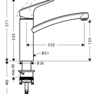 Spültischmischer Hansgrohe 160 Logis Schwenkauslauf Ausladung 220 mm chrom