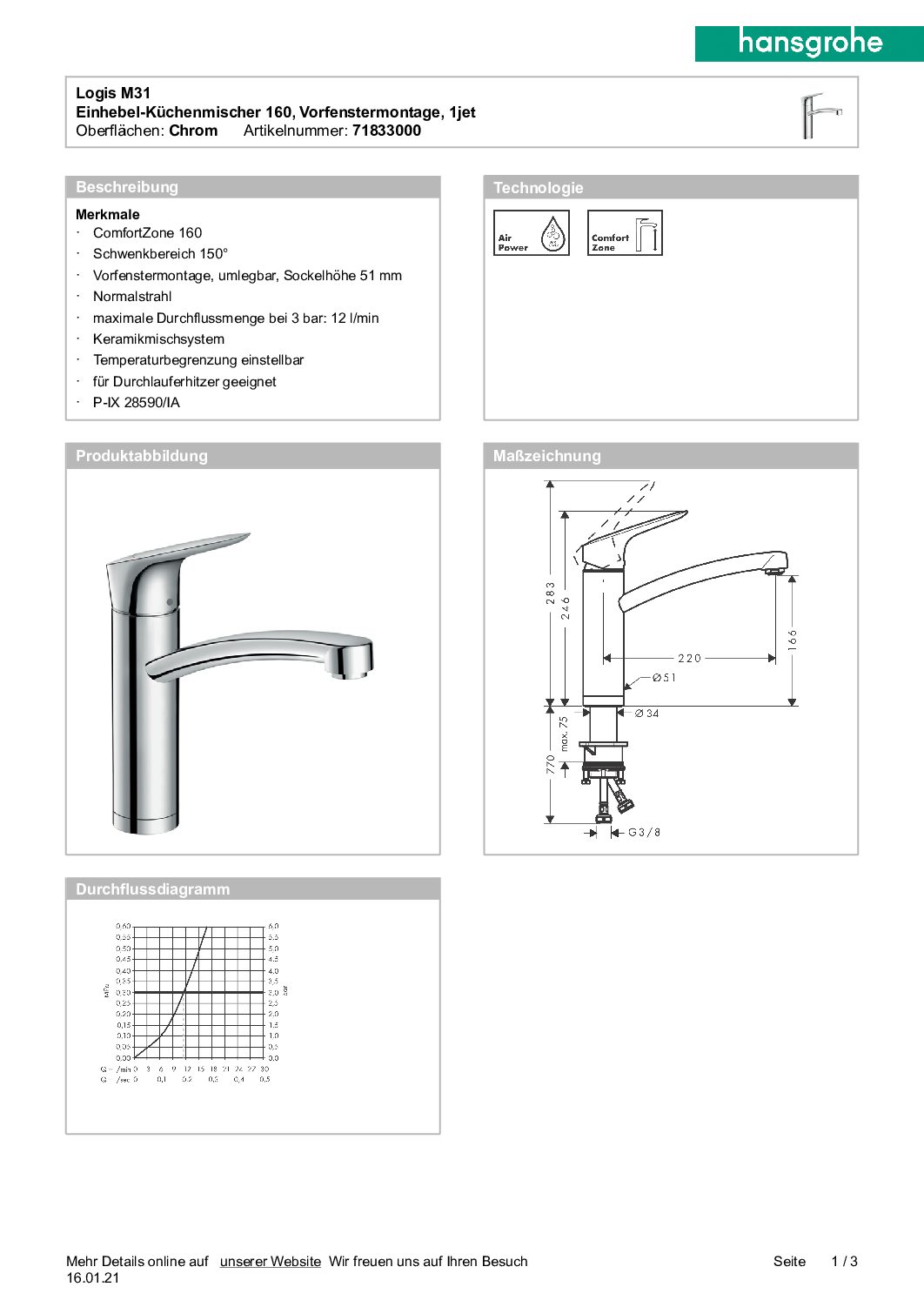 Spültischmischer Hansgrohe 160 Logis M31 für Unterfenster-Montage Ausladung 220 mm verchromt