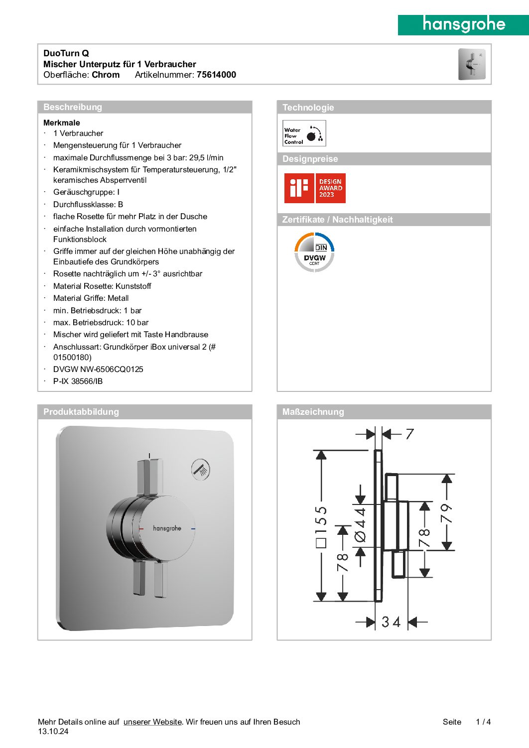 Unterputz-Mischer Hansgrohe DuoTurn E 1 Verbraucher