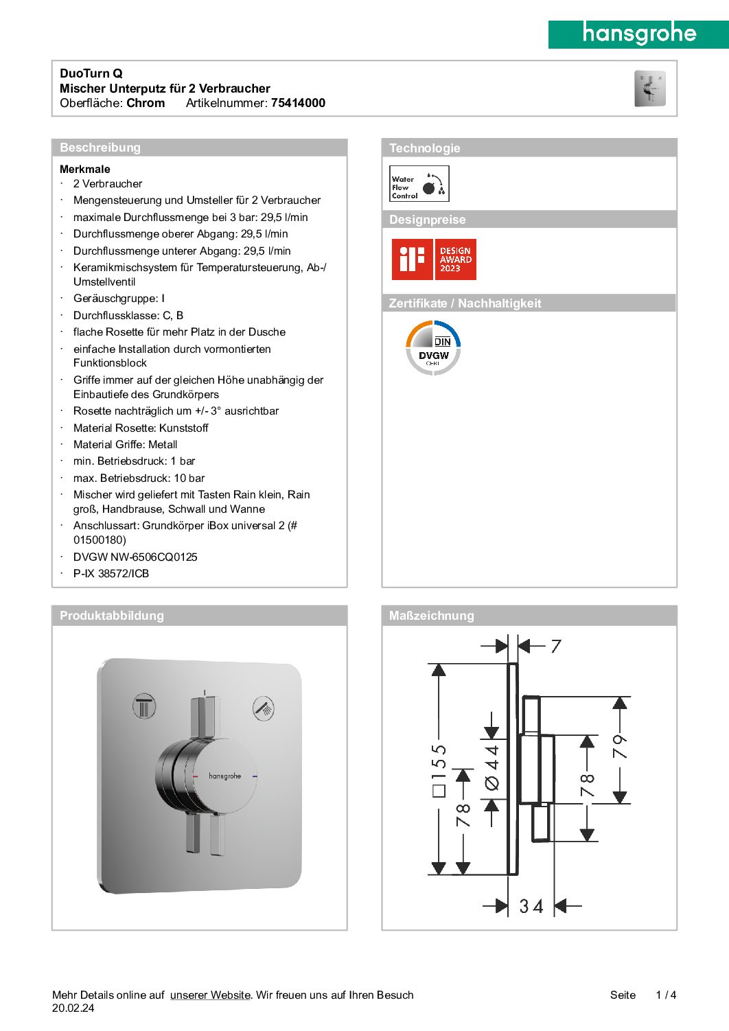 Unterputz-Mischer Hansgrohe DuoTurn Q 2 Verbraucher