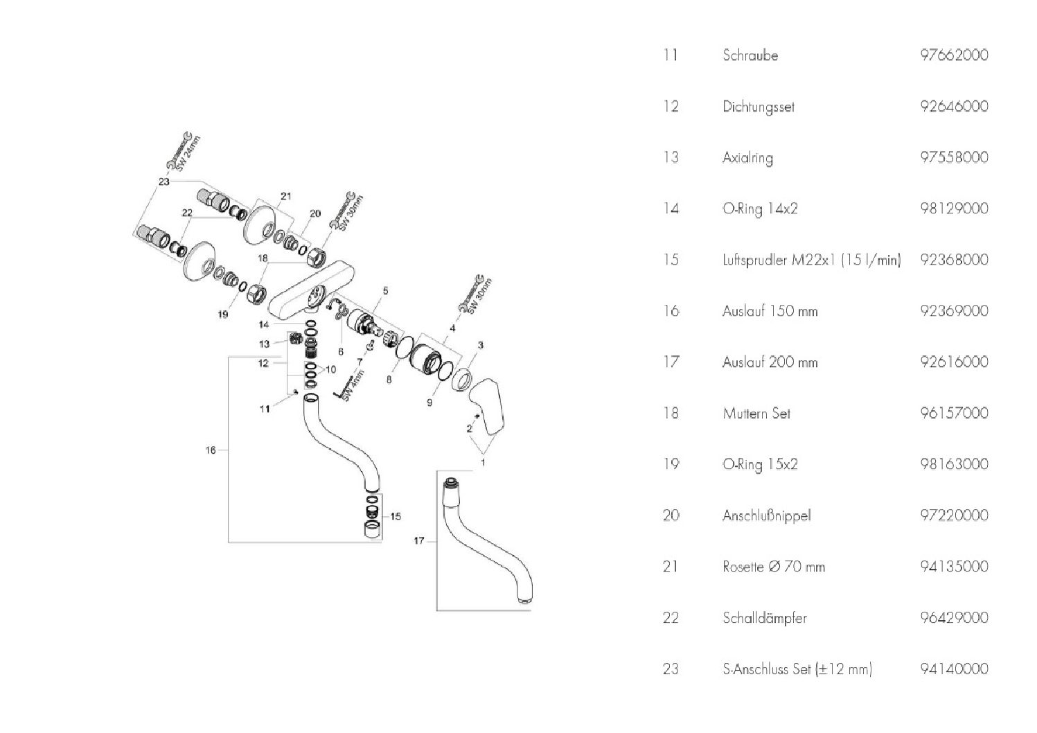AP-Wannenmischer Hansgrohe Logis Ausladung 194 mm chrom