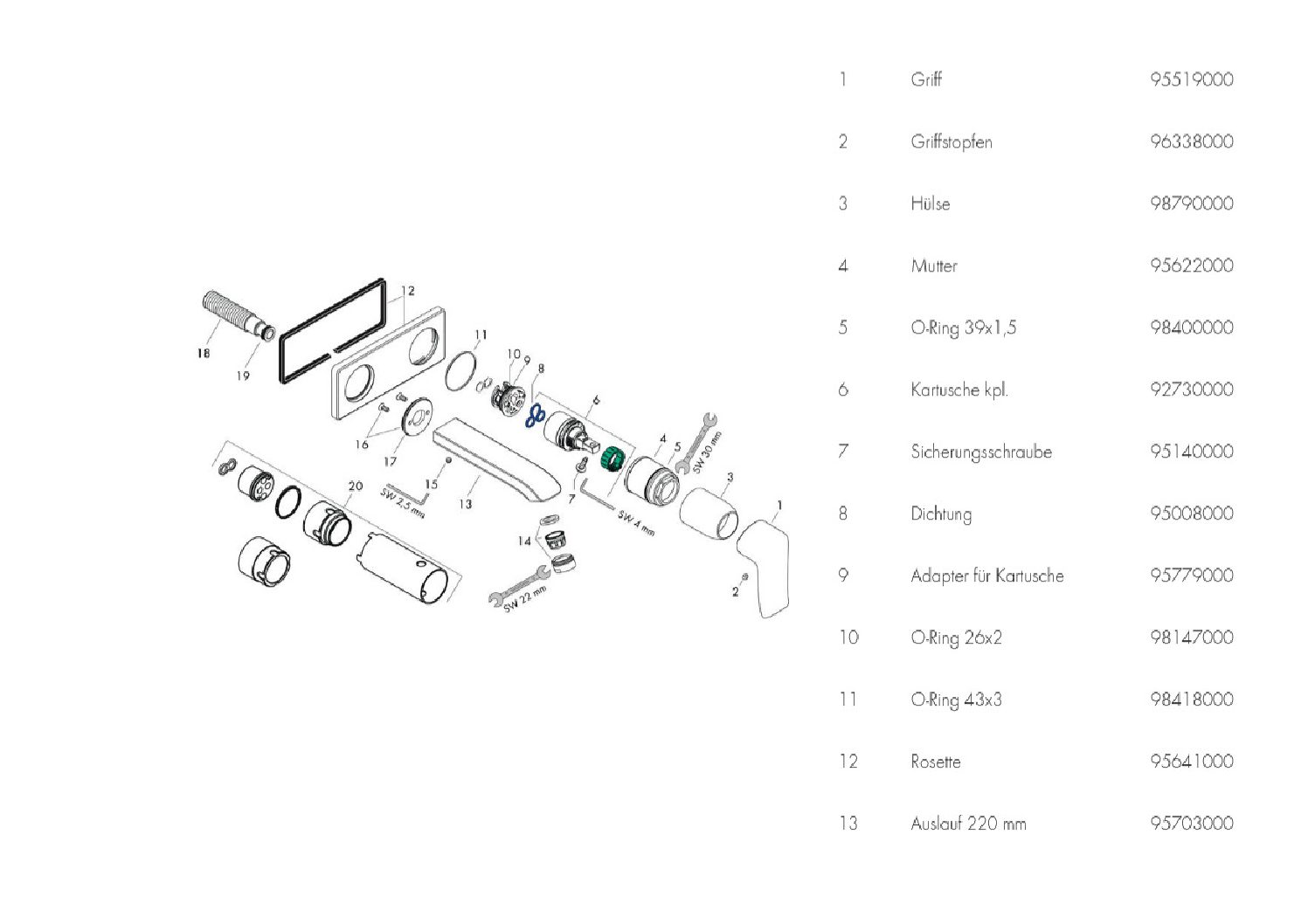 • Griff rechts oder links positionierbar, abhängig von der Installation des Grundkörpers