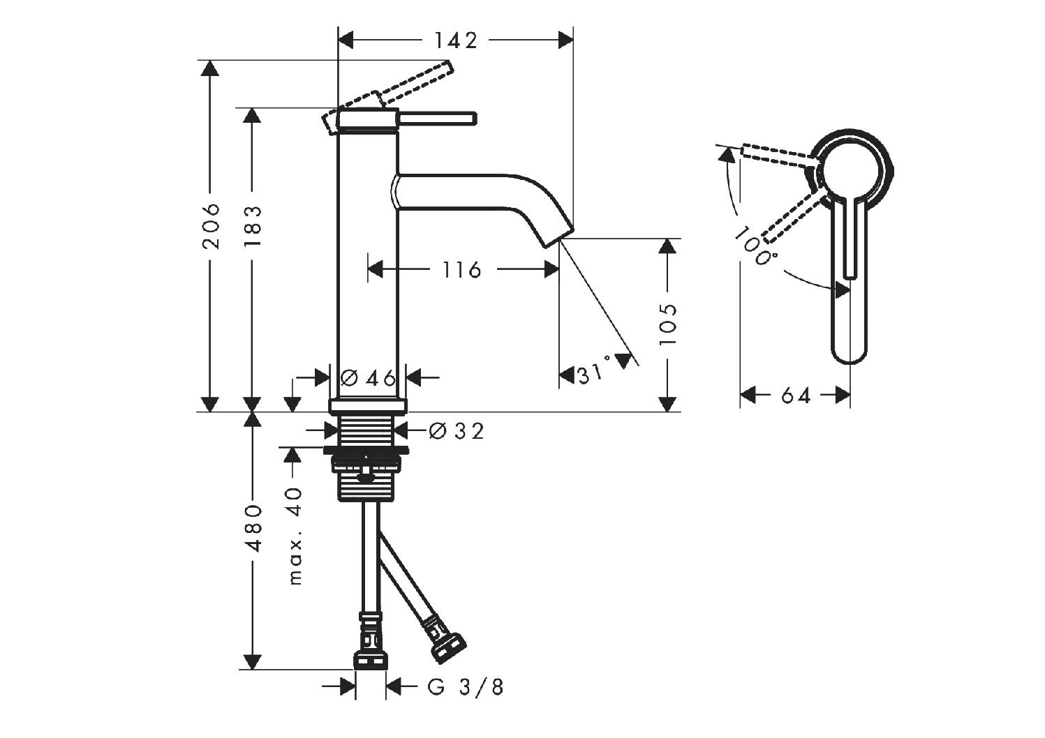 • Auslaufhöhe: 105 mm
