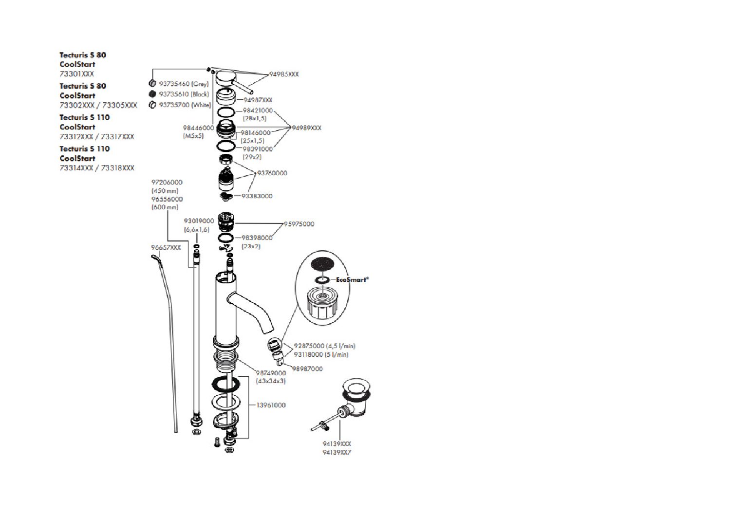 Waschtischmischer Hansgrohe 80 Tecturis S Ausladung 108 mm CoolStart mit Zugstangen-Ablaufgarnitur chrom