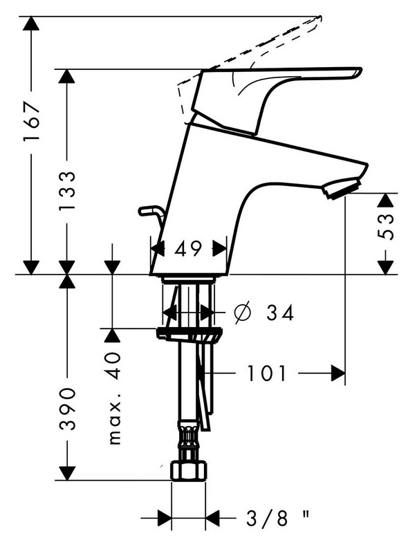 Waschtischmischer Hansgrohe Focus Ausladung 101 mm chrom ohne Ablaufgarnitur