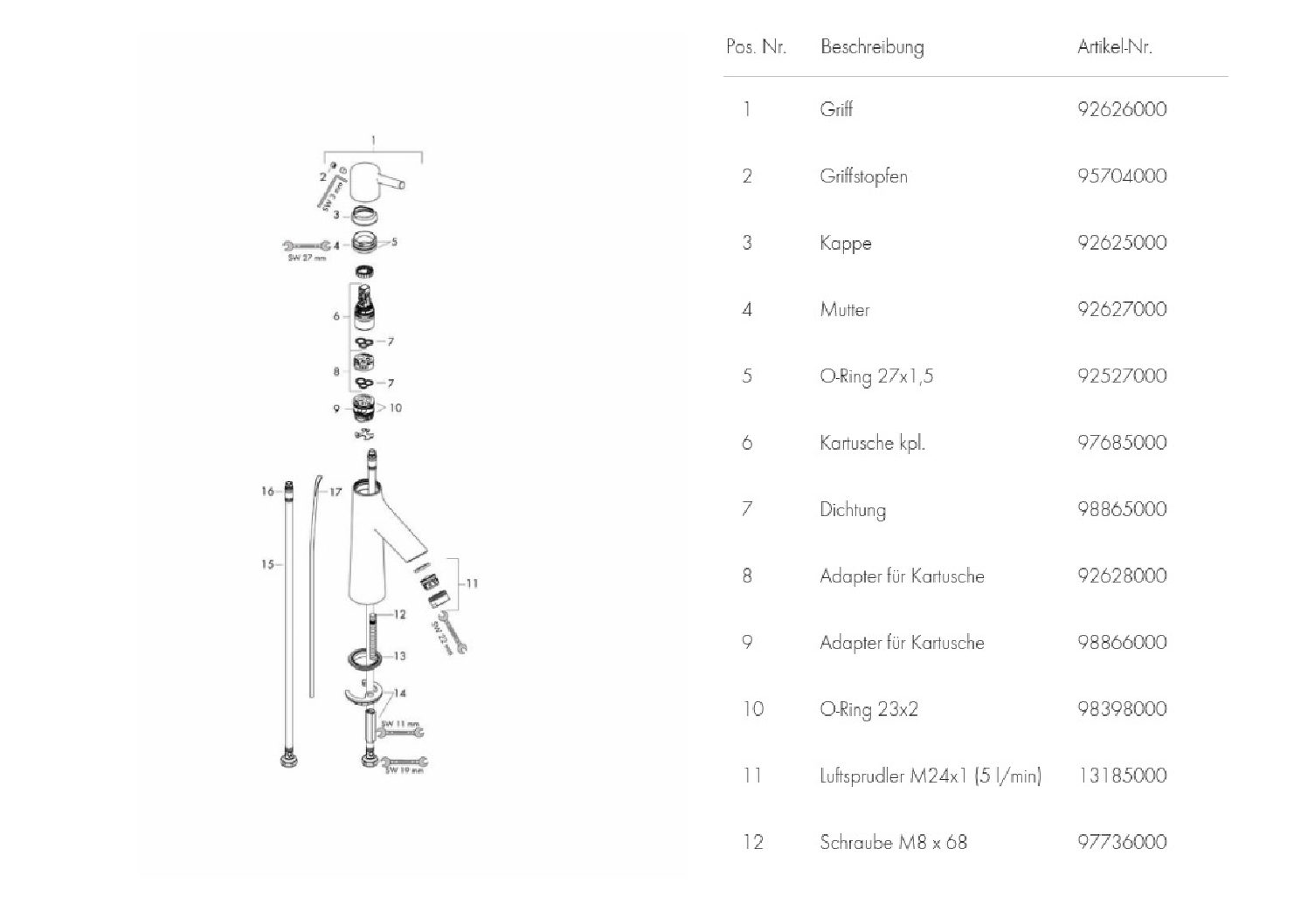 - Bedienung: Einhebelmischer