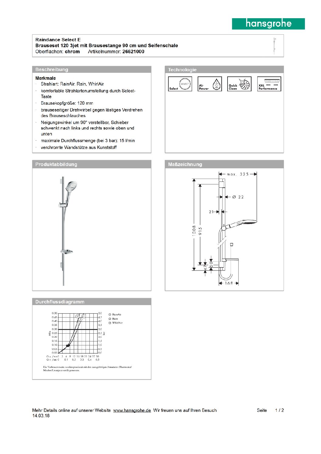 – 3 Strahlarten: RainAir, Rain, WhirlAir