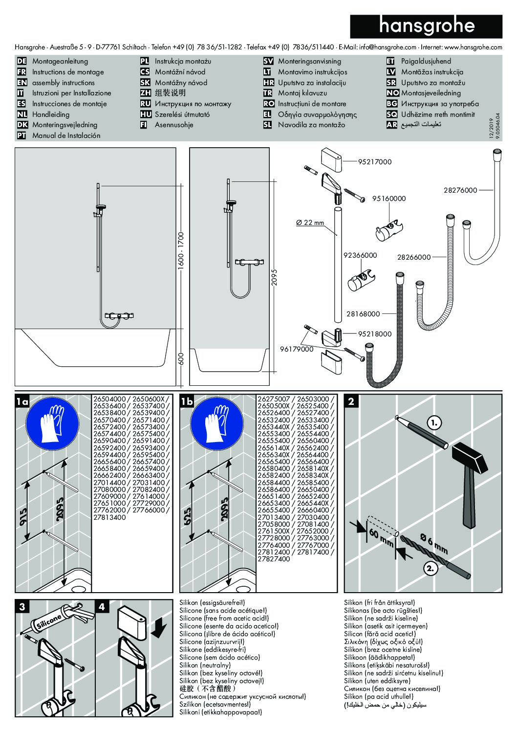 – Brausestange: ø 19 mm, nicht kürzbar