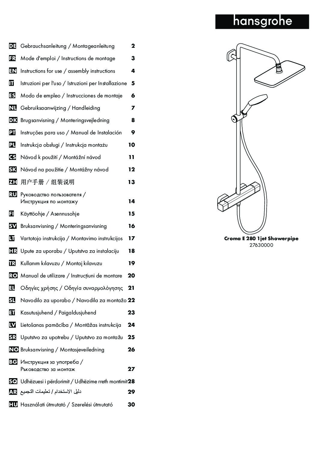 Brause-System Hansgrohe Croma E 280 Handbrause, Kopfbrause 280×170 mm und Thermostat chrom