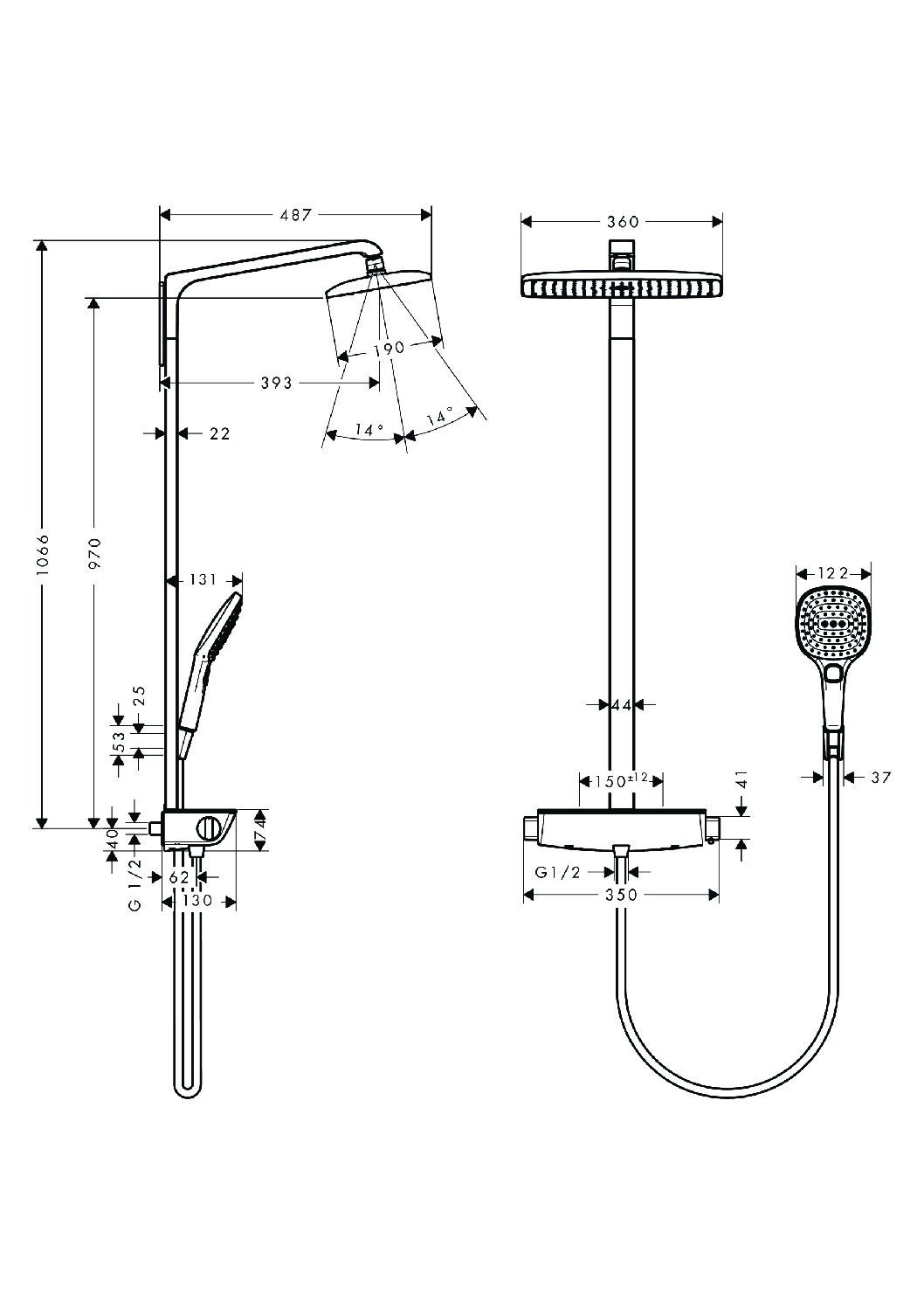 Brause-System Hansgrohe Raindance Select 360 Handbrause, Kopfbrause 360×190 mm und Thermostat chrom