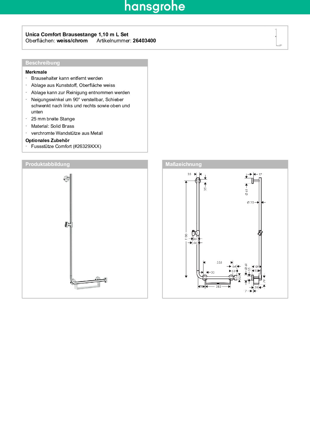 Brausestange Hansgrohe Unica Comfort 1100mm weiß/chrom mit Korb, Links