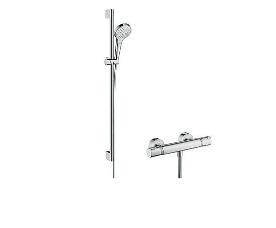 Brausethermostat-Set Hansgrohe Crometta Vario, Ecostat 1001 CL Brausestange 900 mm, Handbrause Ø 100 mm und Brauseschlauch chrom