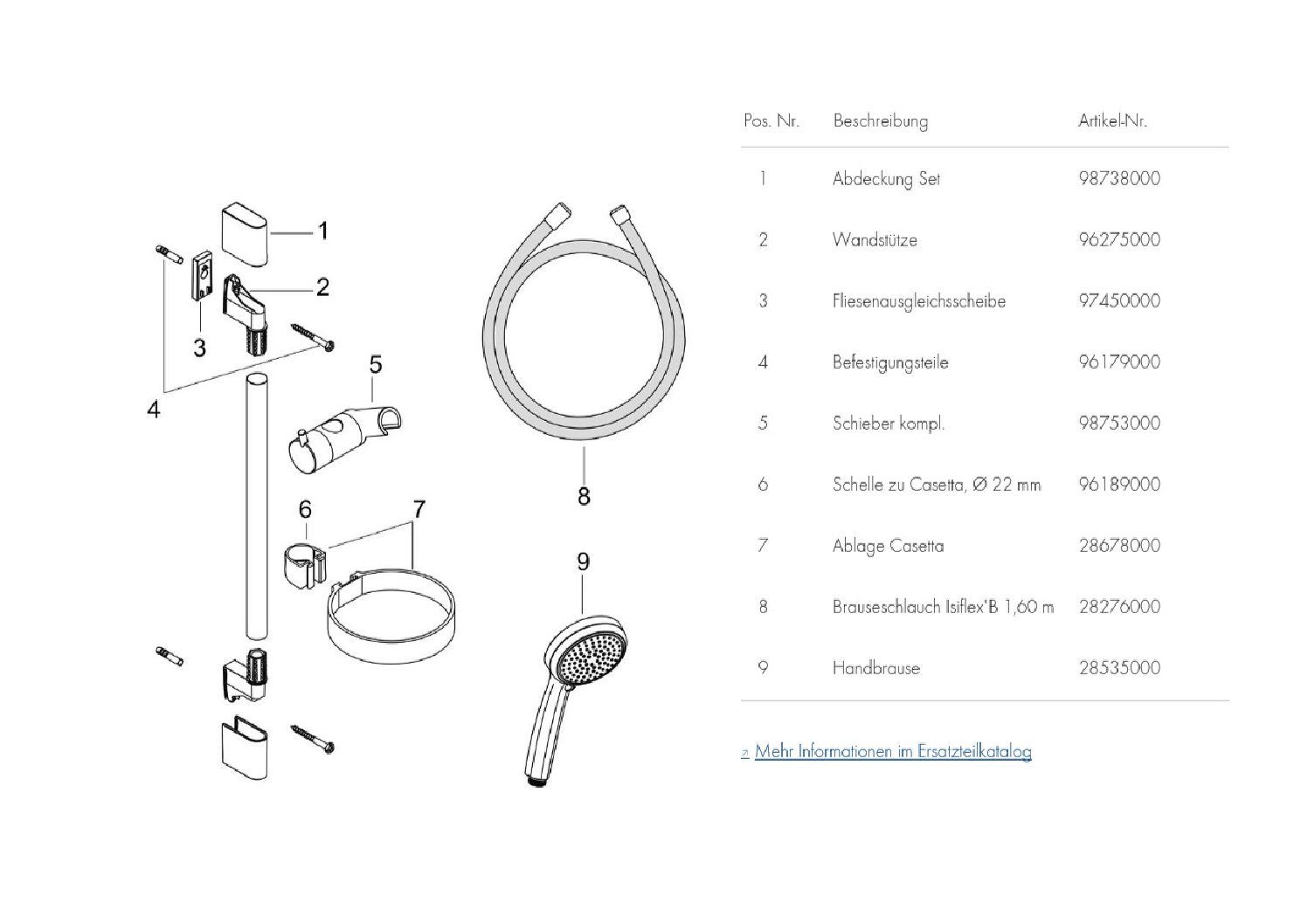 - Brausehalter (Neigungswinkel- und höhenverstellbar)