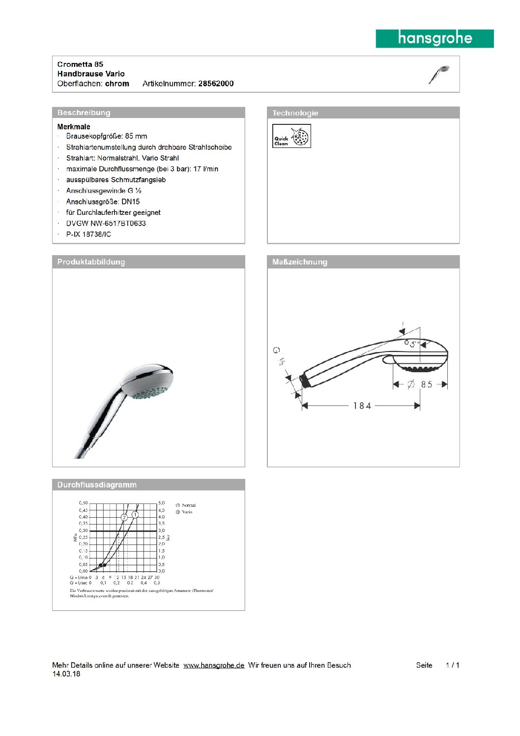 Handbrause Hansgrohe Crometta 85 Variojet 2 Strahlarten Ø 85 mm chrom