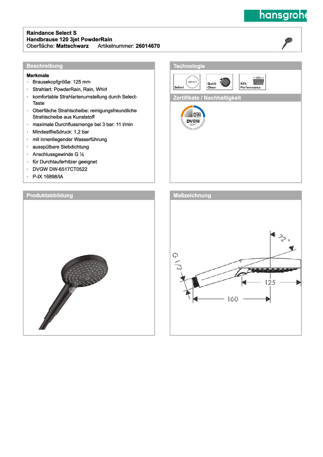 - Handbrause ø: 125 mm