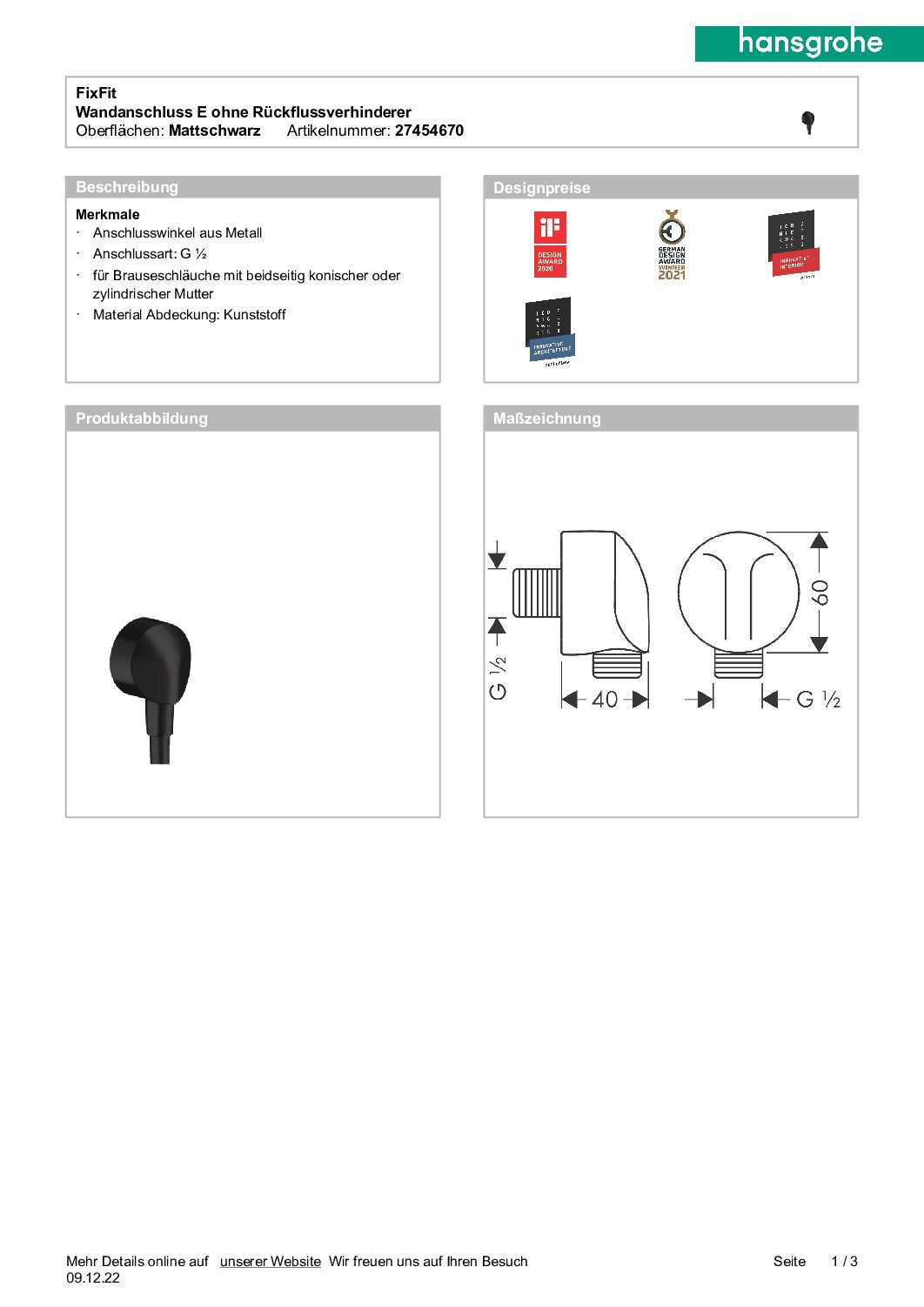 Schlauchanschluß Hansgrohe Fixfit DN15