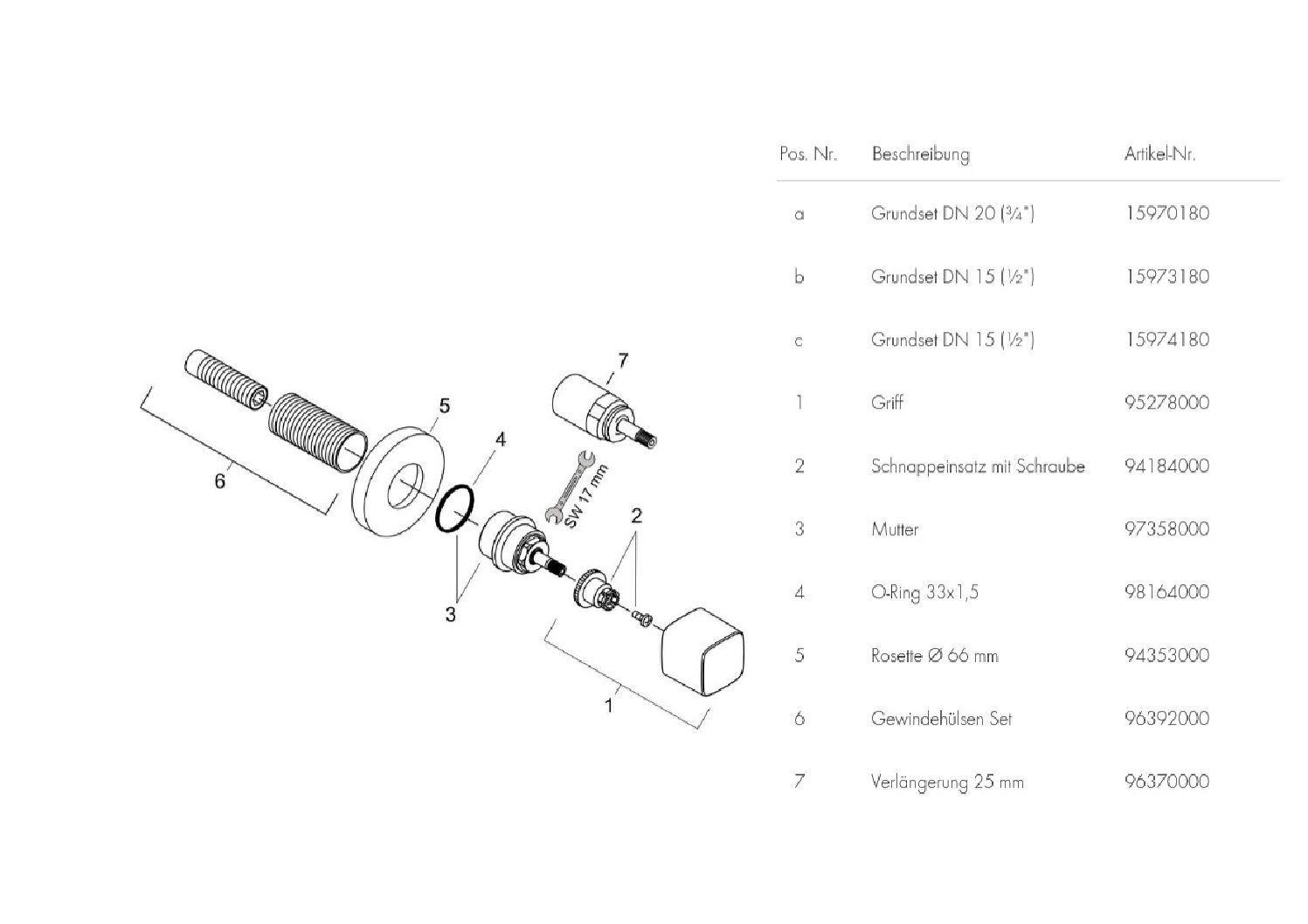 • Fertigset bestehend aus: Griff, Hülse, Rosette