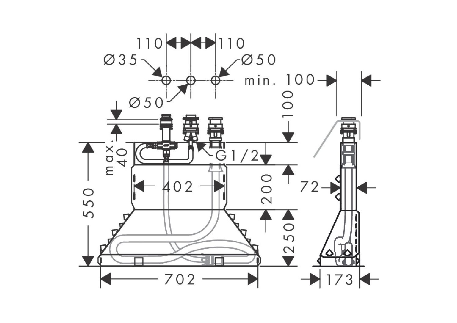 Grundkörper Hansgrohe zu 3-Loch Wannenmischer für Wannenrandmontage