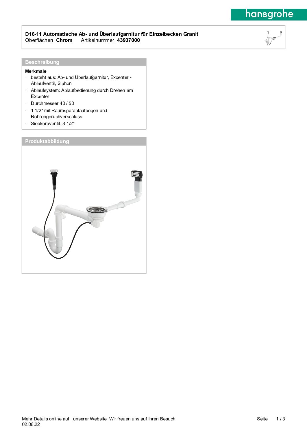 HG Automatische Ab- und Überlaufgarnitur Einzelbecken Granit D16-11