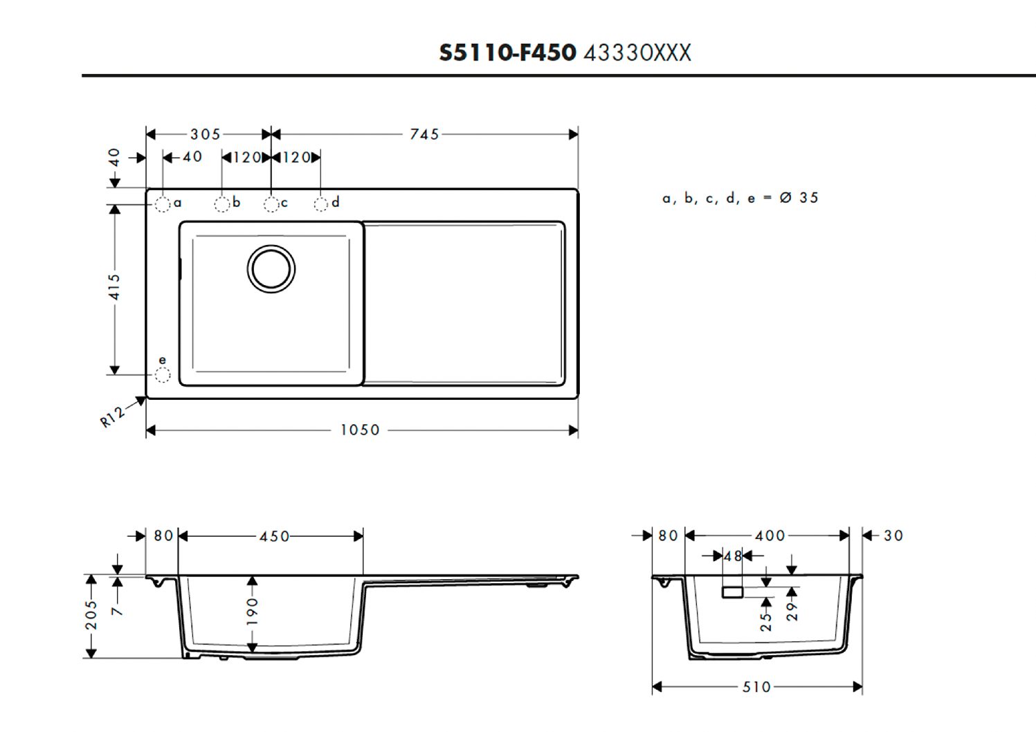 Einbauspüle Hansgrohe 450 S711-F450 Becken BxT: 450×400 mm ohne Exzenterbohrung
