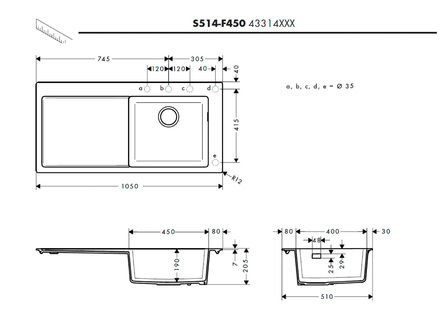 Einbauspüle Hansgrohe 450 S711-F450 Becken BxT: 450×400 mm mit Exzenterbohrung